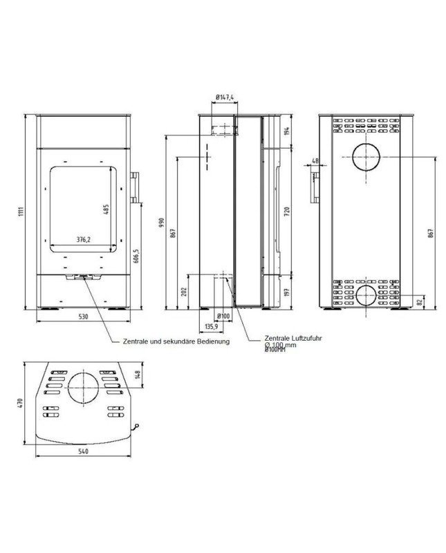 • Externe Luftzufuhr: Ø 100 mm (ohne DIBt-Zulassung)