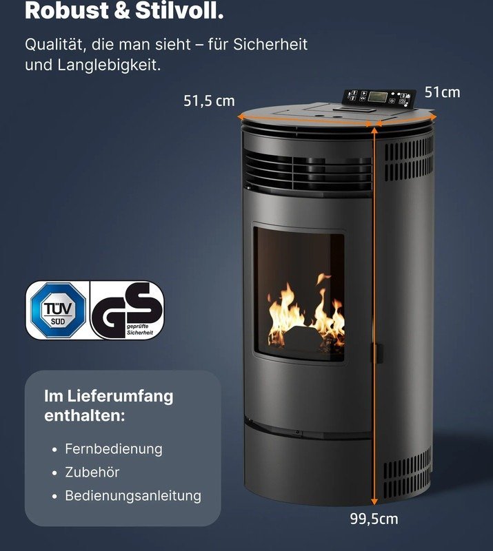 Der Ofen besticht durch sein kompaktes, edles schwarzes Stahlgehäuse und bietet dank Wi-Fi Ready, Eco-Modus und Wochen-Timer höchsten Bedienkomfort. Sicherheitsfunktionen wie Vakuum-Sicherheitsschalter und Überhitzungsschutz garantieren zuverlässigen und sicheren Betrieb.
